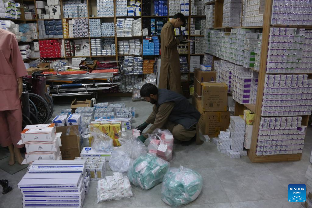 Staff members arrange medicines at a pharmacy in Kabul, Afghanistan, Jan. 5, 2026.(Photo by Saifurahman Safi/Xinhua)