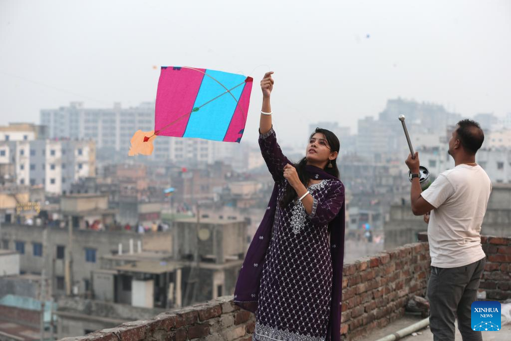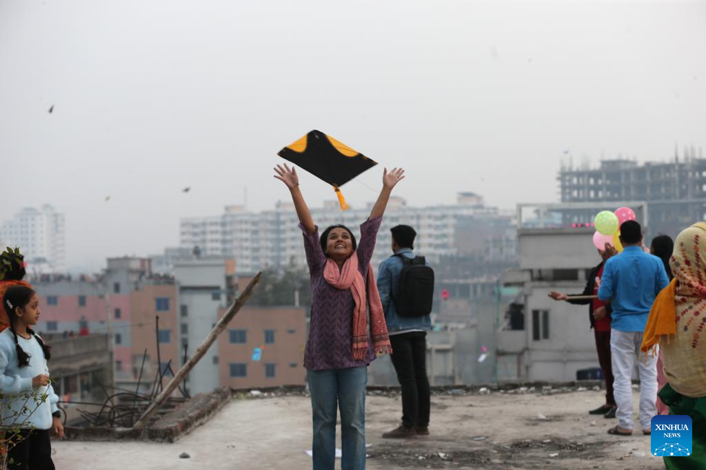 People fly kites during the Sakrain festival in Dhaka, Bangladesh, Jan. 14, 2026. People in Dhaka celebrated Sakrain festival, also known as Ghuri Utsob or Kite festival, at the end of Poush, the ninth month of the Bengali calendar. (Photo by Habibur Rahman/Xinhua)