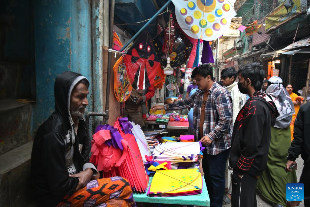 People buy kites during the Sakrain festival in Dhaka, Bangladesh, Jan. 14, 2026. People in Dhaka celebrated Sakrain festival, also known as Ghuri Utsob or Kite festival, at the end of Poush, the ninth month of the Bengali calendar. (Photo by Habibur Rahman/Xinhua)