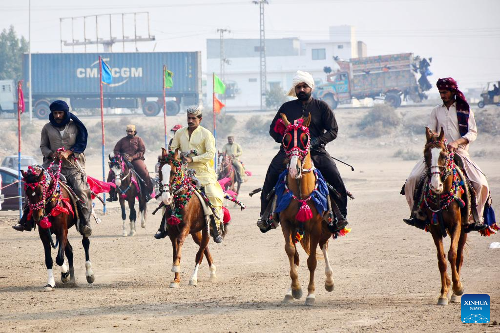 Horsemen compete in a horse race, as part of the local annual horse and cattle show in Hyderabad, southern Pakistan, on Jan. 17, 2026. (Str/Xinhua)