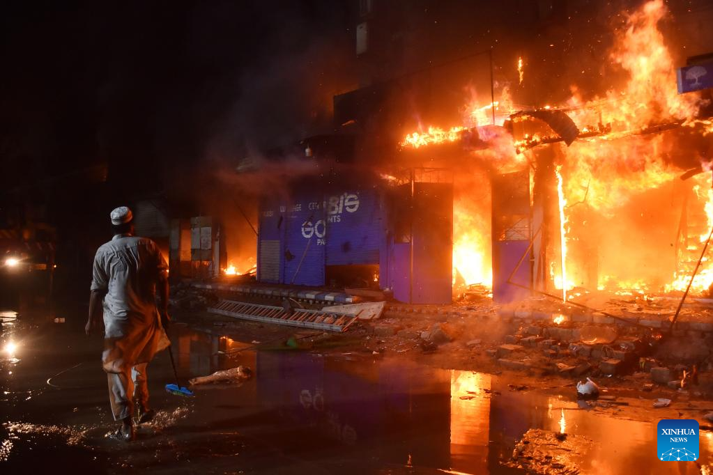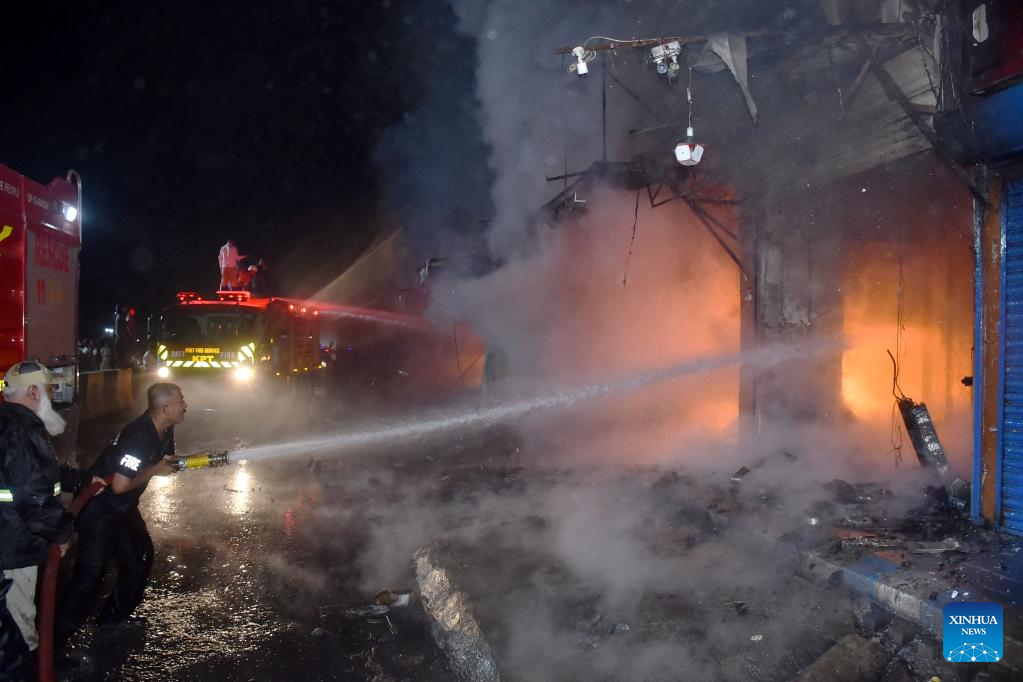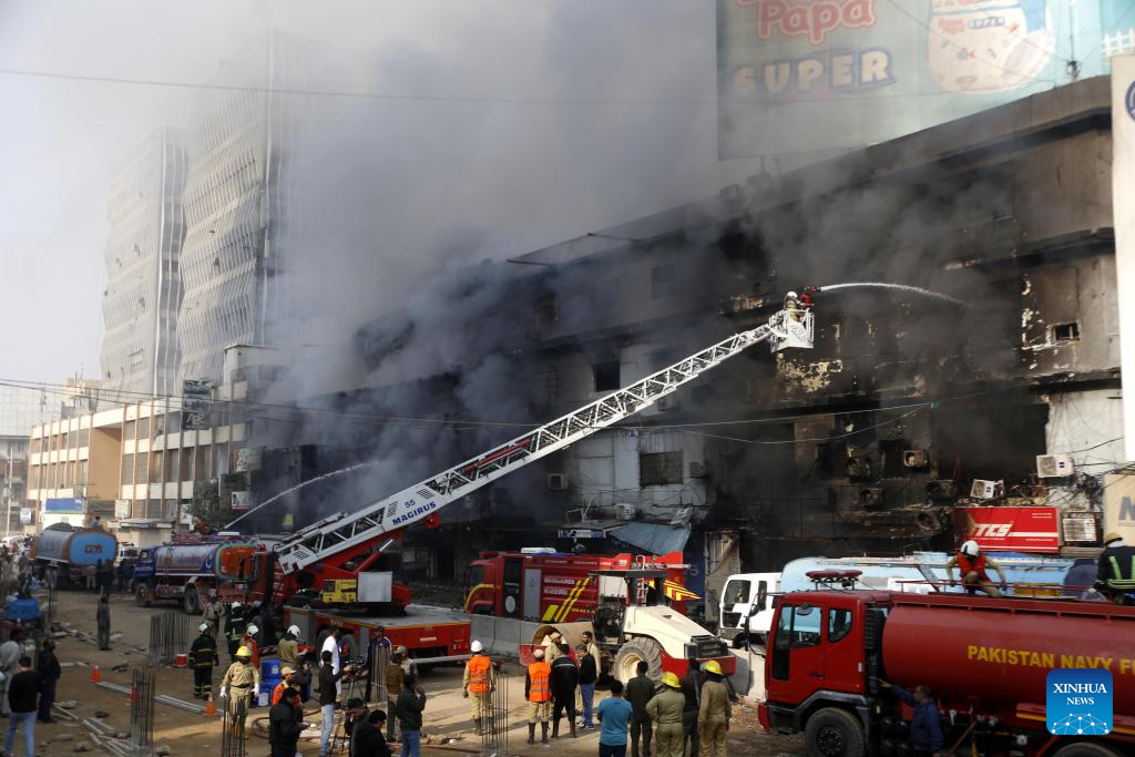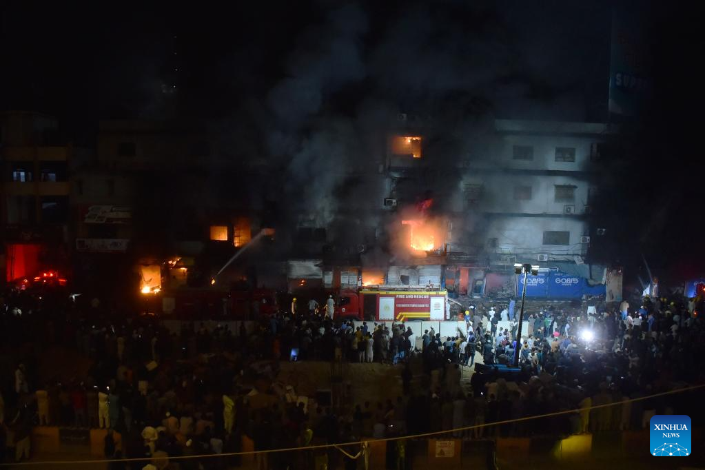 Spokesperson of the southern Sindh province, Sadia Javed, told Xinhua that the blaze erupted at Gul Plaza, a multi-storey shopping mall located on the MA Jinnah Road, which houses over 1,200 shops.