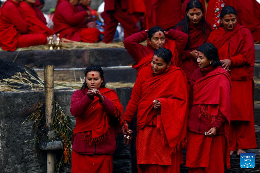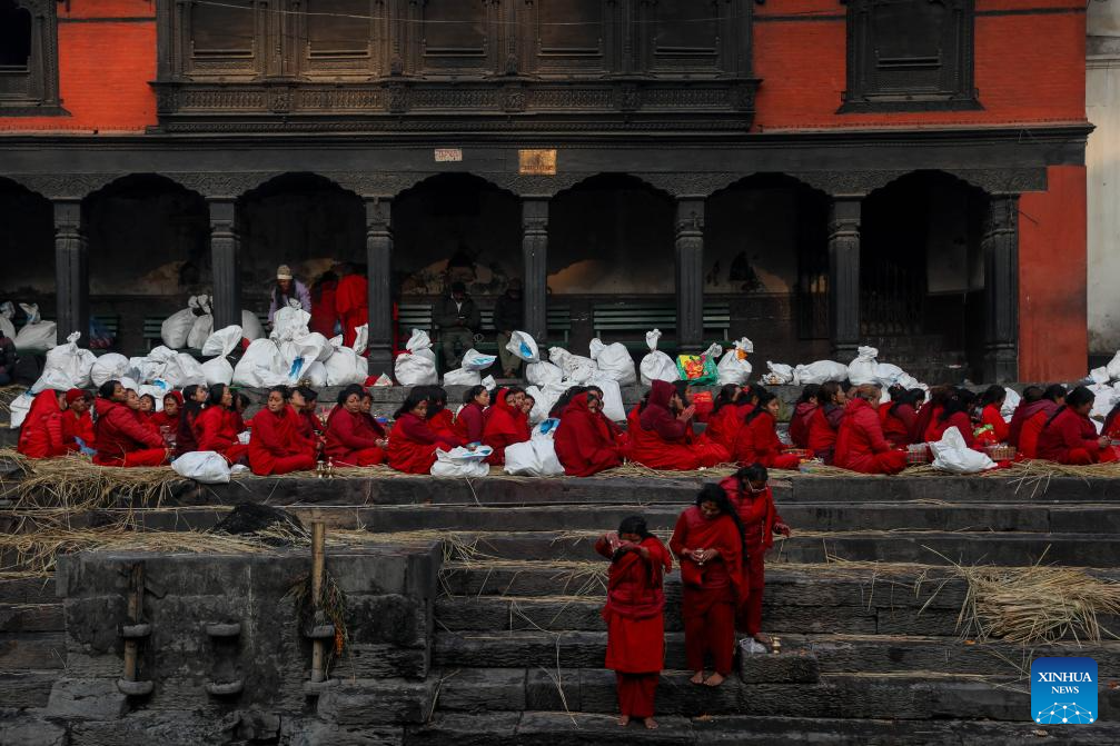 Devotees perform rituals during the month-long Madhav Narayan Festival at Pashupatinath Temple in Kathmandu, Nepal, Jan. 18, 2026. The festival is observed through fasting and praying to Goddess Swasthani and God Madhav Narayan. (Photo by Sulav Shrestha/Xinhua)