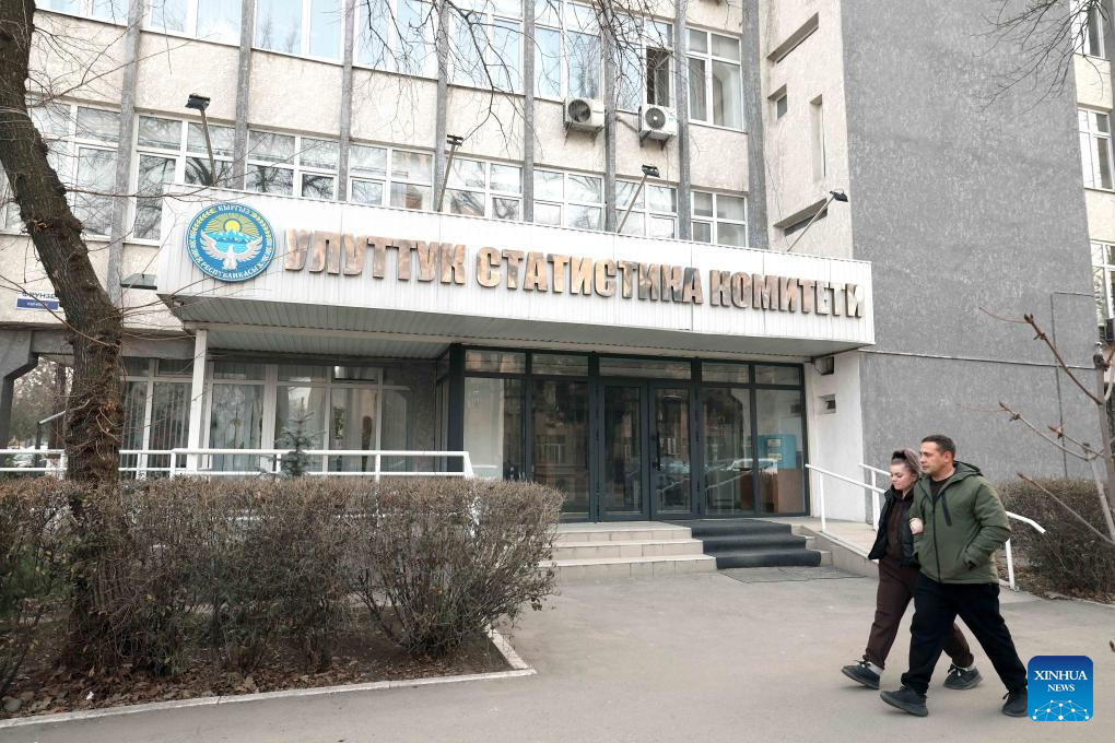 People walk past the building of the National Statistical Committee of the Kyrgyz Republic in Bishkek, Kyrgyzstan, Jan. 15, 2026. Kyrgyzstan's gross domestic product (GDP) surged 11.1 percent last year to reach 22.6 billion U.S. dollars, according to official data released on Monday. (Photo by Roman/Xinhua)