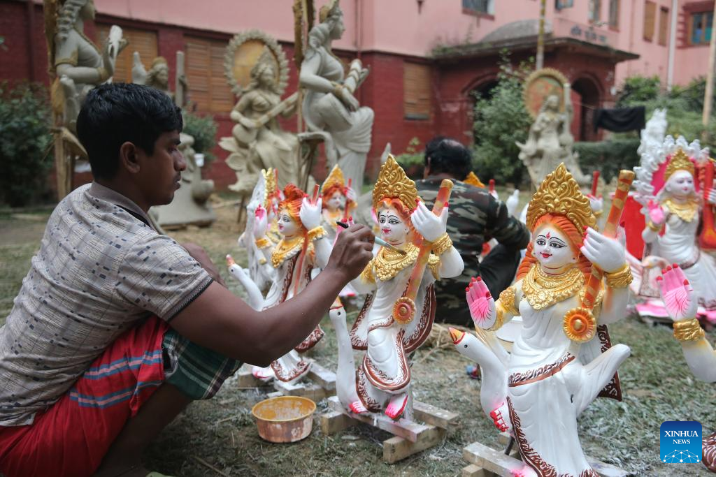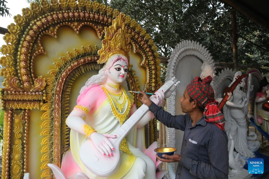 An idol maker paints a clay idol ahead of Saraswati Puja Festival in Dhaka, Bangladesh, on Jan. 20, 2026. (Photo by Habibur Rahman/Xinhua)