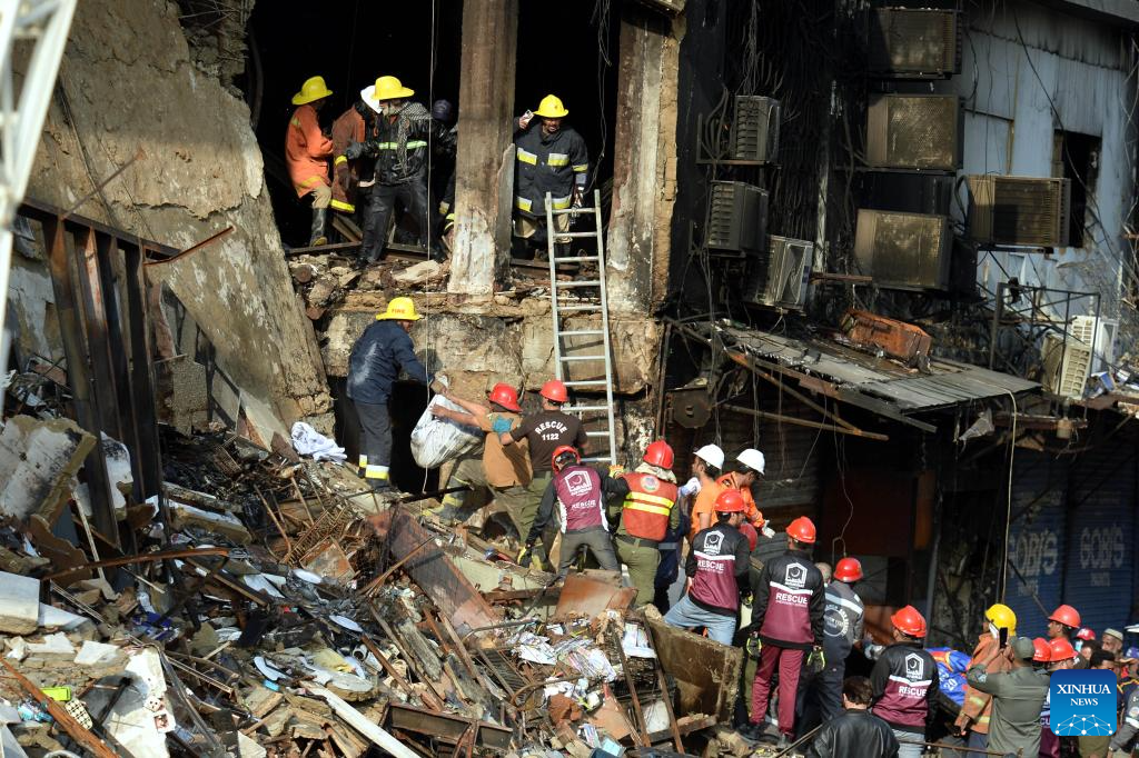 ISLAMABAD, Jan. 20 (Xinhua) -- The death toll from a massive fire at a multi-storey commercial building in Pakistan's southern port city of Karachi has risen to 26, while 74 people are still missing, officials said on Tuesday.