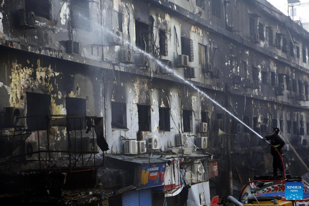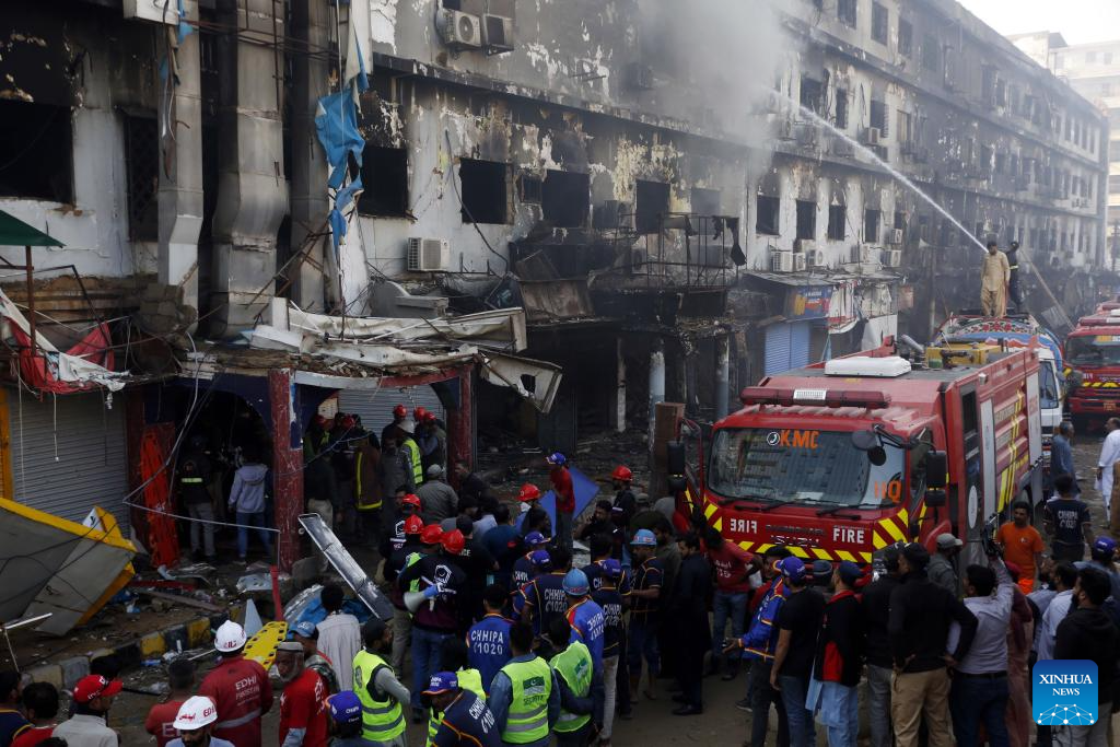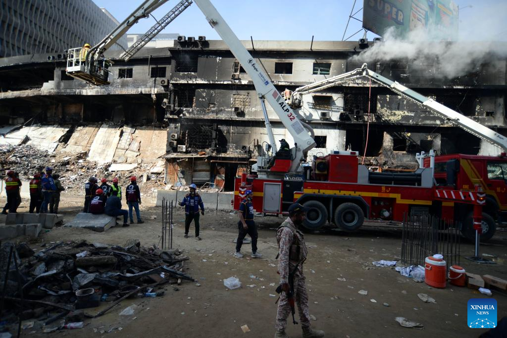 The fire has caused an estimated 100 billion Pakistani rupees (about 360 million U.S. dollars) in economic losses. The blaze, which started on Saturday night, engulfed the entire building.