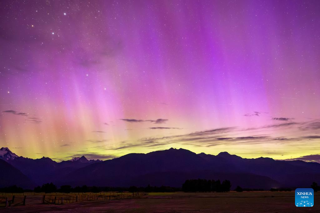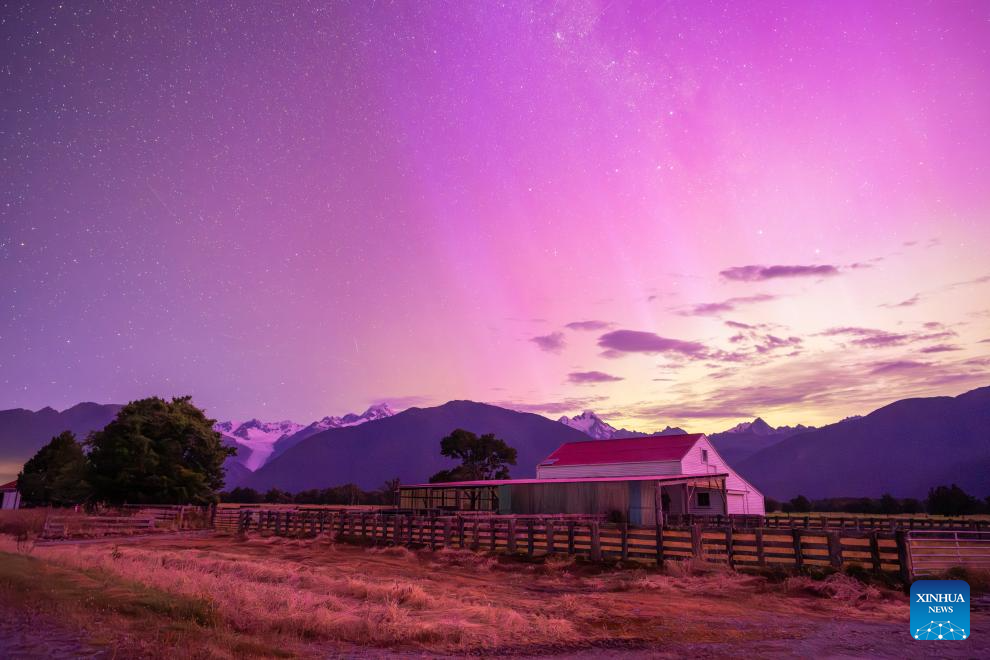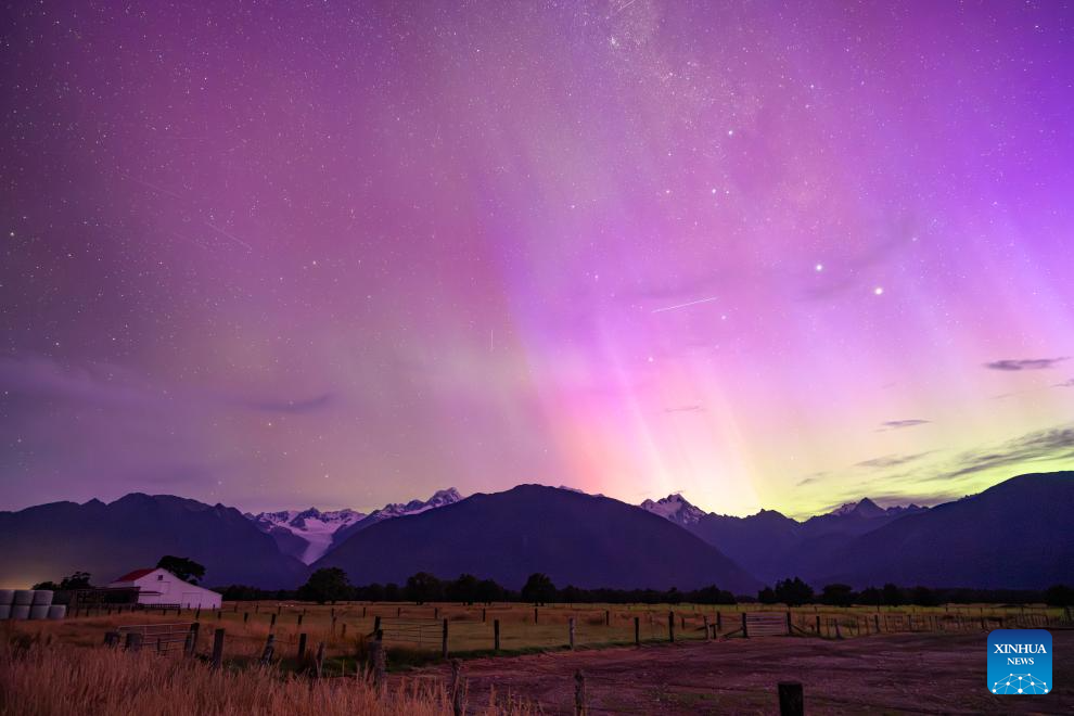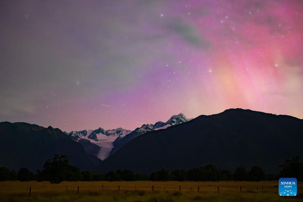 The aurora is seen near the Fox Glacier of New Zealand's South Island, Jan. 20, 2026. (Photo by Yang Liu/Xinhua)