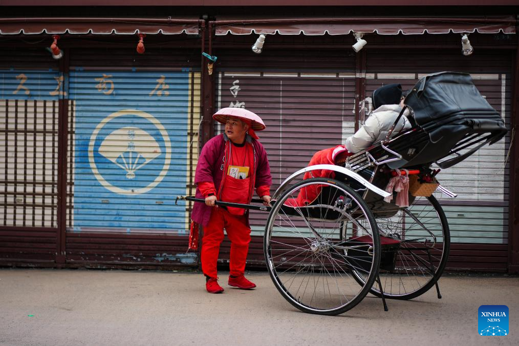 A rickshaw puller provides a guided tour for tourists in the vicinity of the Senso-ji Temple in Tokyo, Japan, Jan. 20, 2026. The number of visitors from the Chinese mainland to Japan plunged 45.3 percent from a year earlier in December 2025, official data showed.