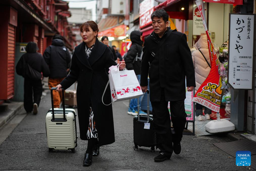 Tourists visit the vicinity of the Senso-ji Temple in Tokyo, Japan, Jan. 20, 2026. The number of visitors from the Chinese mainland to Japan plunged 45.3 percent from a year earlier in December 2025, official data showed. Tourists from the Chinese mainland fell to about 330,400 people in December 2025, the Japan National Tourism Organization (JNTO) said on Wednesday. (Xinhua/Jia Haocheng)