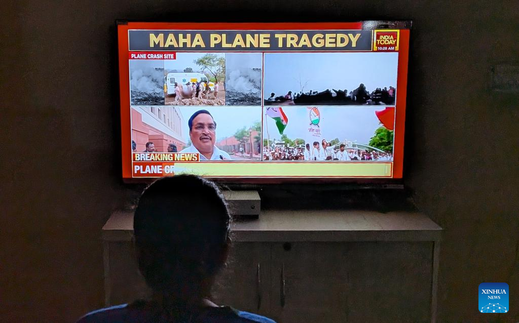 A resident watches a televised news report on a plane crash at home in New Delhi, India, Jan. 28, 2026. (Photo by Deepak Prakash/Xinhua)