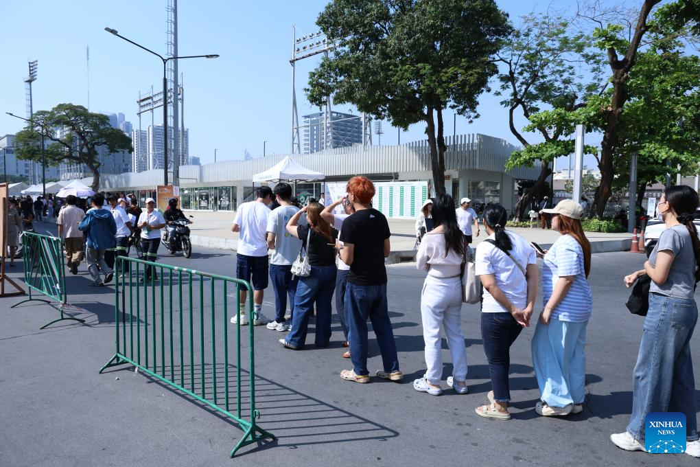 Voters line up to cast their ballots at a polling station during an early voting for Thailand's House of Representatives election at the National Stadium in Bangkok, Thailand, on Feb. 1, 2026. Early voting for Thailand's House of Representatives election started at 8 a.m. local time on Sunday, with more than 2 million eligible voters unable to cast their ballots on the official polling day of Feb. 8 participating in the process. (Xinhua/Sun Weitong)