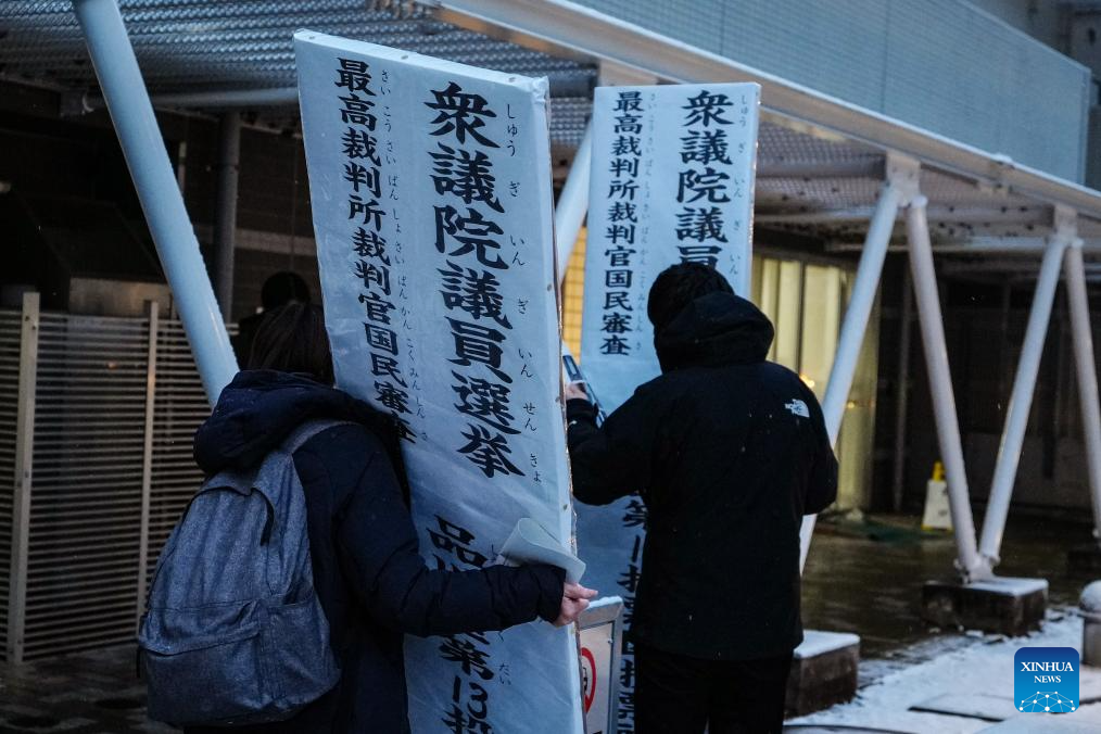 Voting in Japan's general election began on Sunday morning, with over 1,200 candidates competing for 465 seats in the House of Representatives, the powerful lower chamber of parliament. (Xinhua/Jia Haocheng)