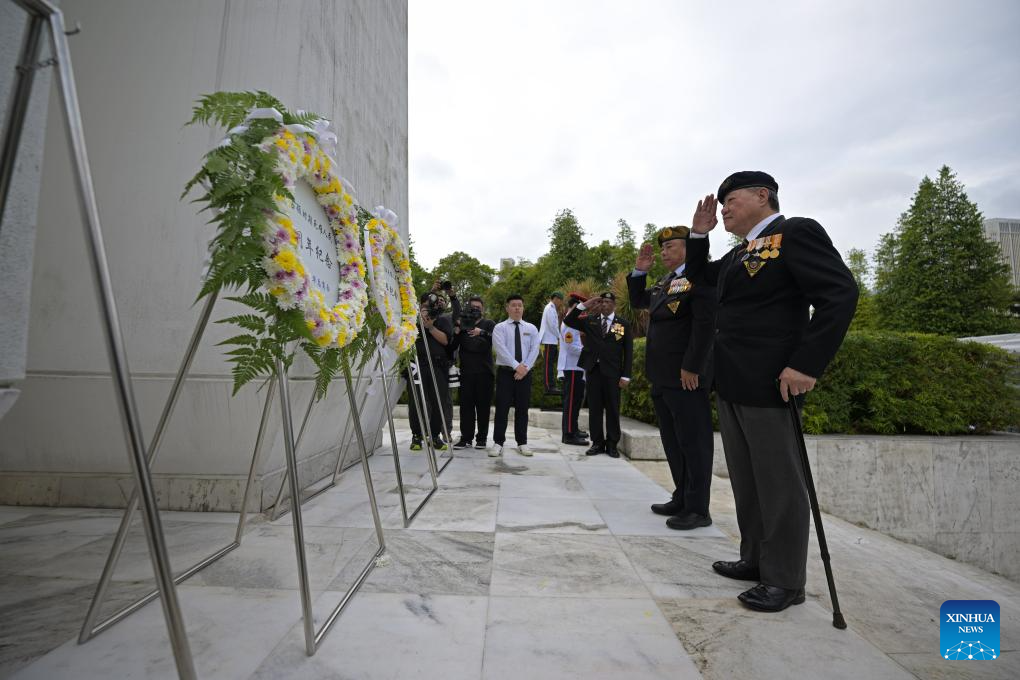 Representatives of retired veterans of the Singapore Armed Forces salute during a memorial ceremony to commemorate civilians who died during the Japanese occupation in World War II, in Singapore, Feb. 15, 2026. Singapore held a memorial ceremony on Sunday to commemorate civilians who died during the Japanese occupation in World War II, with about 500 people attending the annual observance in the city center. (Photo by Then Chih Wey/Xinhua)