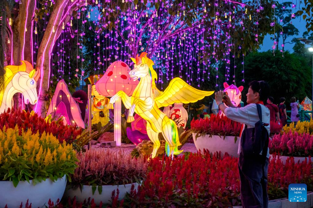 A tourist takes photos at a lantern fair in celebration of the upcoming Year of the Horse in Selangor state, Malaysia, Feb. 14, 2026. (Photo by Chong Voon Chung/Xinhua)