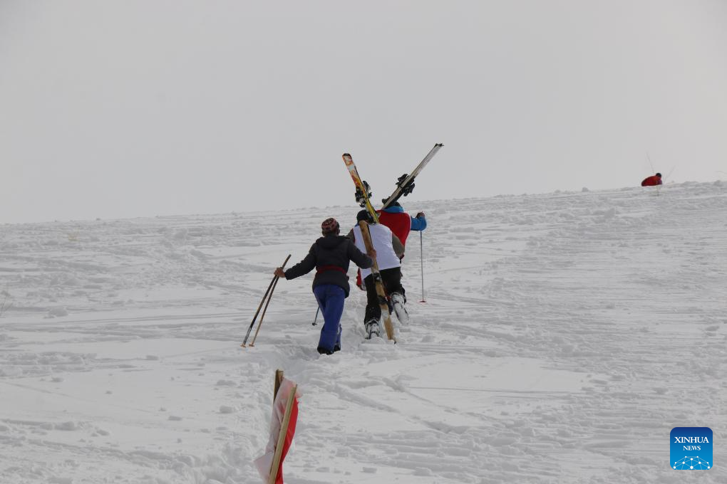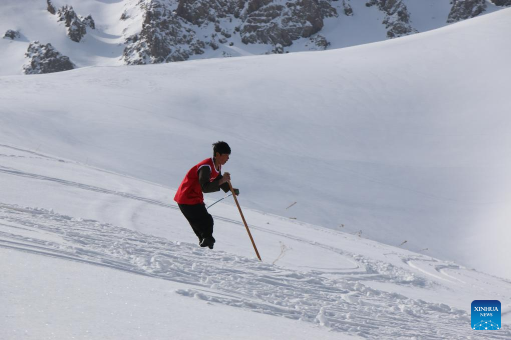Afghan ski enthusiasts take part in a ski competition in Bamiyan province, Afghanistan, Feb. 16, 2026. (Photo by Ziaodin Azad/Xinhua)