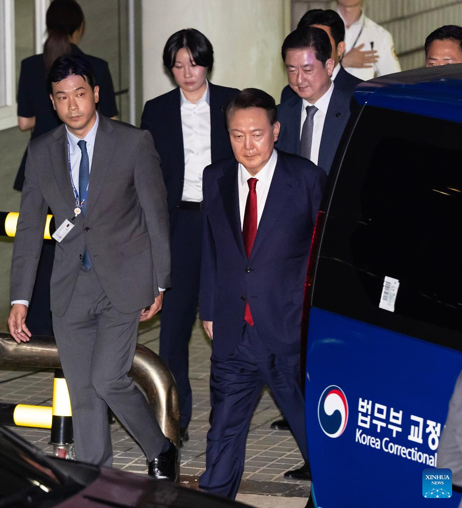 This file photo shows South Korea's former President Yoon Suk-yeol after a hearing in Seoul, South Korea, July 9, 2025. South Korea's former President Yoon Suk-yeol was sentenced to life in prison on charges of insurrection stemming from his declaration of emergency martial law, live footage showed Thursday. The Seoul Central District Court delivered its ruling, which was broadcast live to the public, saying the crux of Yoon's martial law case was the fact that troops were deployed to the National Assembly. (NEWSIS/Handout via Xinhua)