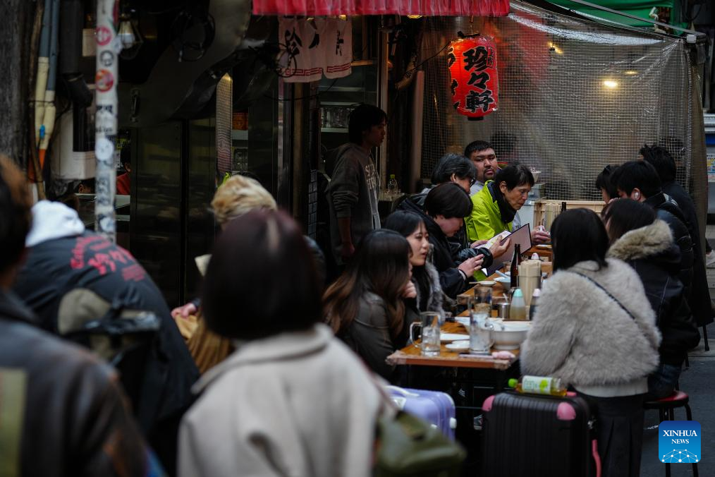Customers dine at a restaurant in Tokyo, Japan, Feb. 20, 2026. Japan's core consumer prices in January increased 2.0 percent from a year earlier, marking a two-year low and matching the central bank's inflation target, government data showed Friday.