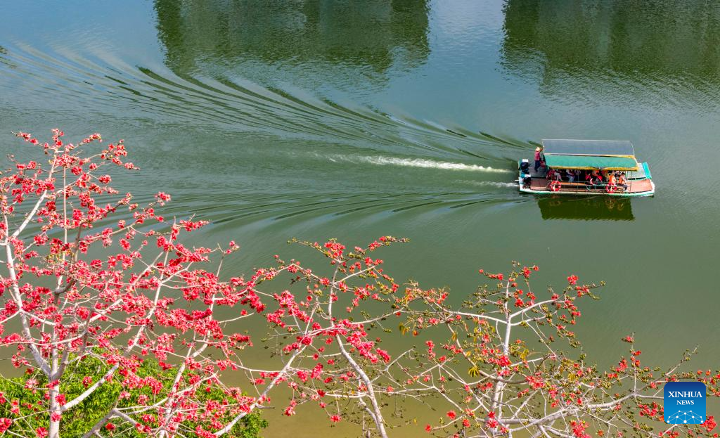 Tourists view flowering crabapple trees in Zhanyi District of Qujing, southwest China's Yunnan Province, on Feb. 26, 2026. (Photo by Sun Wenlai/Xinhua)
