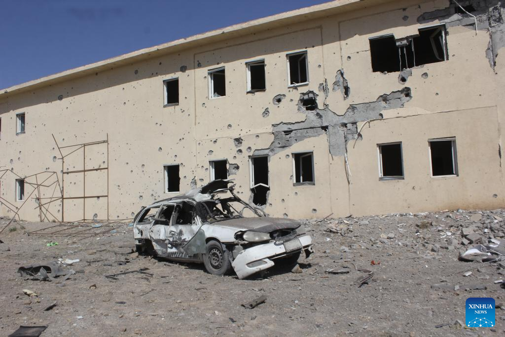 A damaged building and a shattered car are seen at a temporary camp following a strike in Kandahar province, Afghanistan, Feb. 28, 2026. Three Afghan returnees lost their lives and seven others were injured after Pakistani forces struck a temporary camp of returnees in southern Afghanistan's Kandahar province on Saturday, deputy spokesman of the Afghan government Hamdullah Fitrat said. (Photo by Arghand/Xinhua)