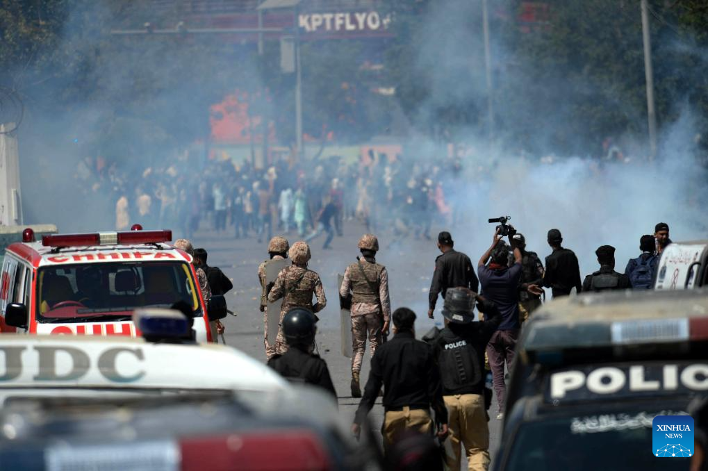 ISLAMABAD, March 1 (Xinhua) -- At least nine people were killed and more than 20 others injured on Sunday as protesters clashed with law enforcement personnel outside the U.S. Consulate in Karachi in Pakistan's southern Sindh province, officials said.