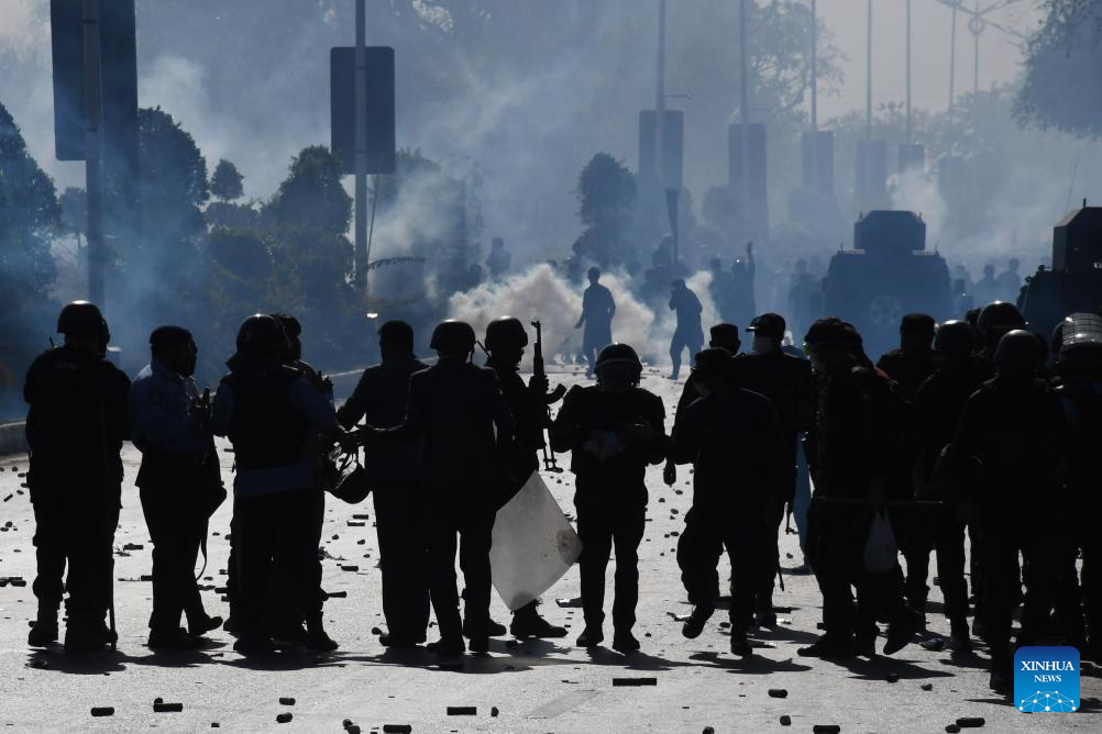 Law enforcement personnel clash with anti-U.S. protesters in Islamabad, capital of Pakistan, March 1, 2026. Twenty people were killed and over 100 others injured in anti-U.S. demonstrations in Pakistan on Sunday, police sources told Xinhua. (Xinhua)