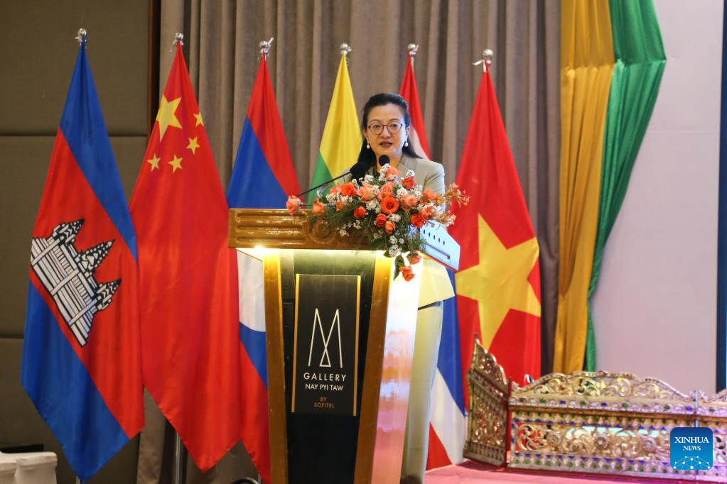 Myanmar on Thursday held a ceremony to mark the 10th anniversary of the Lancang-Mekong Cooperation (LMC) mechanism in Nay Pyi Taw, highlighting achievements made under the regional cooperation framework over the past decade. (Photo by Ei Mon Kyaw/Xinhua)