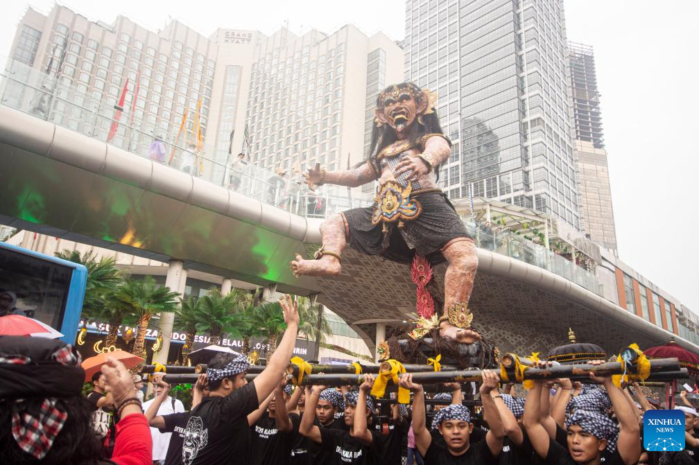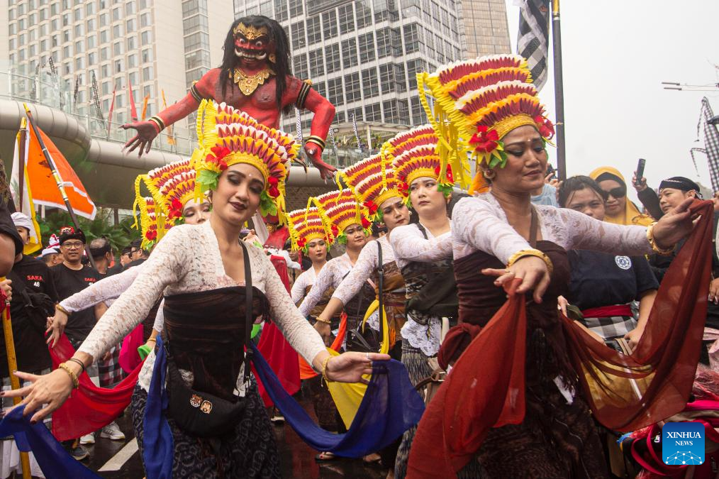 People attend a parade to welcome the upcoming Nyepi day, or the Day of Silence, in Jakarta, Indonesia, March 8, 2026. (Xinhua/Agung Kuncahya B.)