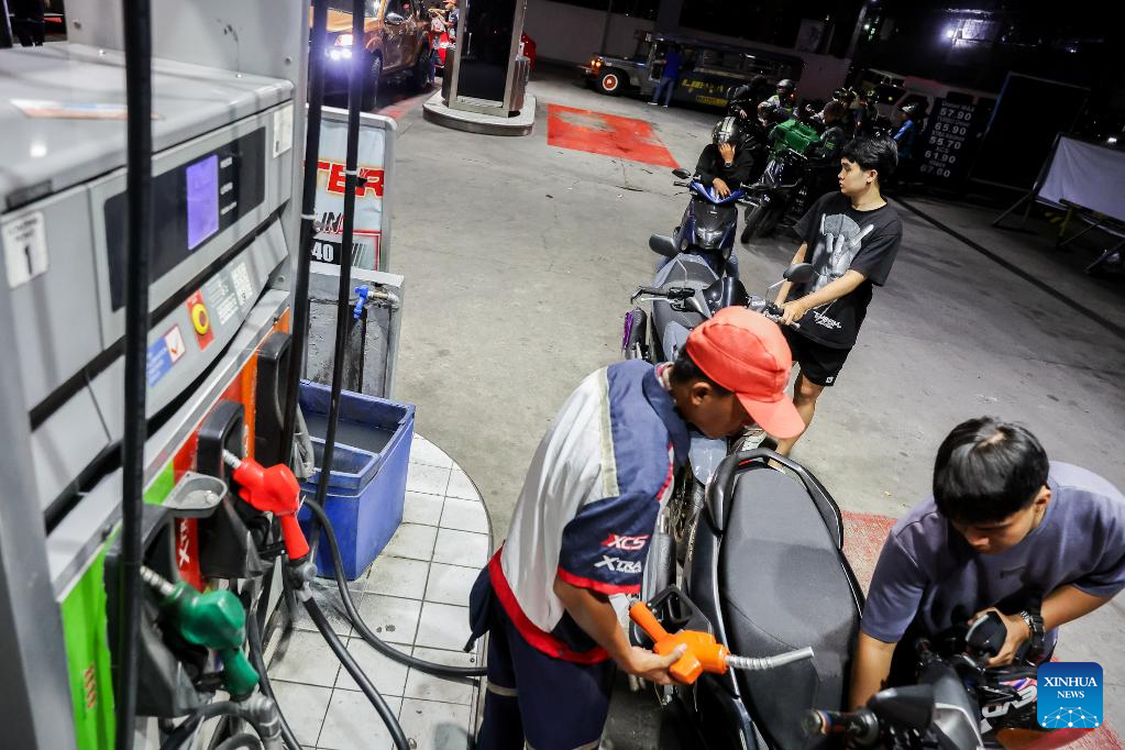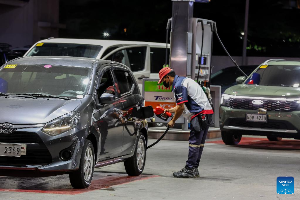 A staff member fuels a car at a gas station in Quezon City, the Philippines, on March 9, 2026. Motorists across the Philippines swarmed gasoline stations on Monday, rushing to refuel ahead of a massive price hike scheduled for Tuesday. Oil prices are expected to increase by about 17 pesos to 24 pesos (roughly 0.29 U.S. dollars to 0.40 dollars) per liter this week, said Energy Secretary Sharon Garin on Monday. (Xinhua/Rouelle Umali)