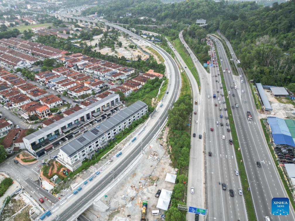 An aerial drone photo taken on March 16, 2026 shows rails near the East Coast Rail Link (ECRL)'s Gombak station in Selangor state, Malaysia. A ceremony was held Monday at the East Coast Rail Link (ECRL)'s Gombak station, marking a major milestone for the Malaysian ECRL, as track-laying was completed on the Kota Bharu-Gombak section of a mega rail project, which is being built by the China Communications Construction Company (CCCC). (Xinhua/Chen Zeguo)