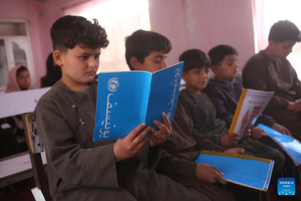 An Afghan child attends a class at an educational center in Kabul, Afghanistan, March 26, 2026. (Photo by Saifurahman Safi/Xinhua)