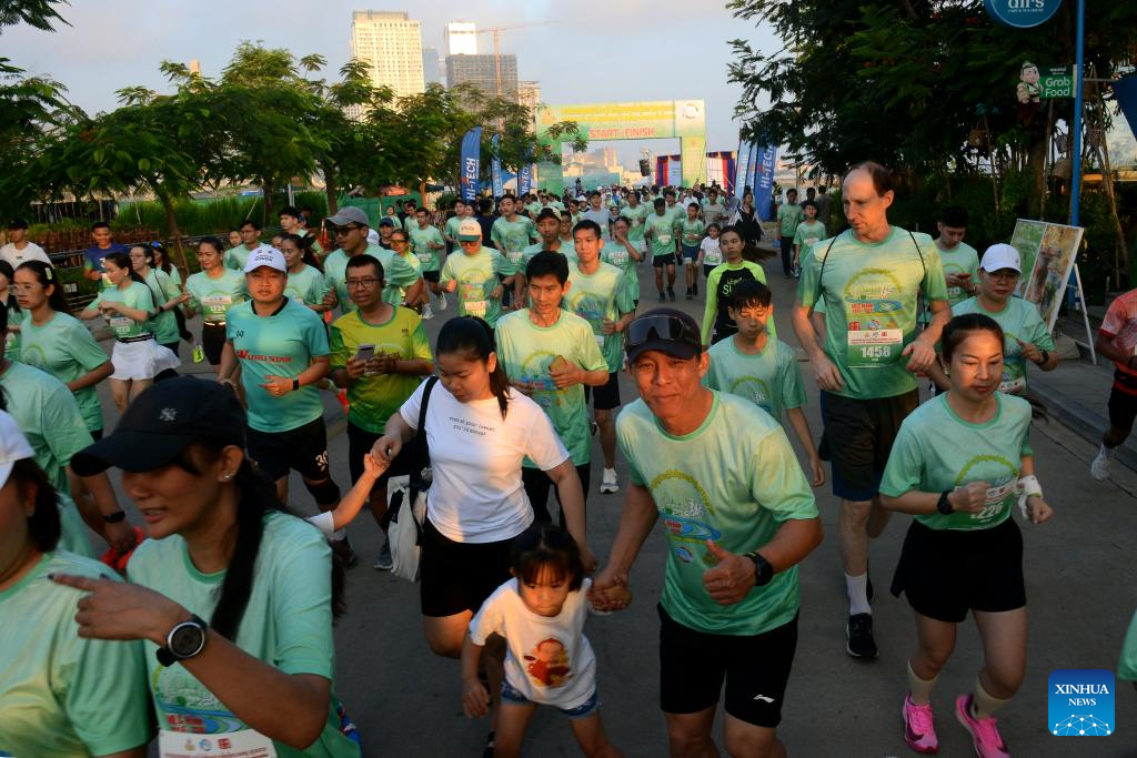 Hundreds of people took part in a 5-km fun run along the Mekong riverbank here in the capital of Cambodia on Saturday to celebrate the Lancang-Mekong Cooperation (LMC) Week 2026 and the LMC's 10th anniversary. (Photo by Phearum/Xinhua)