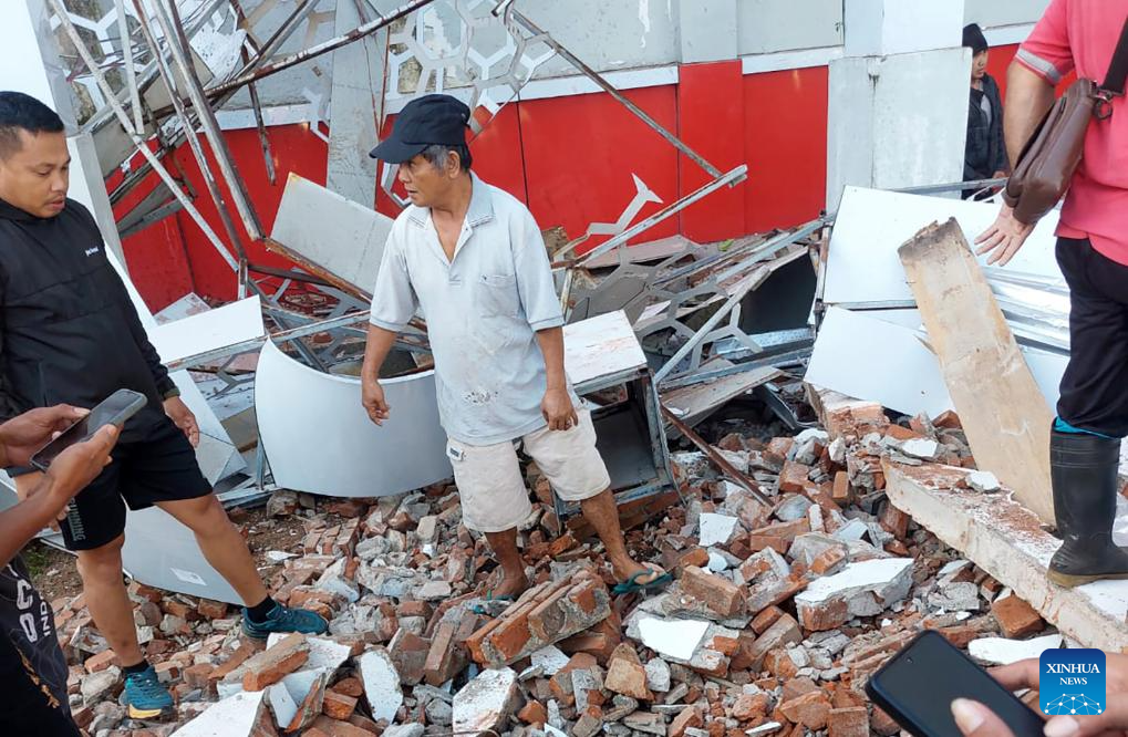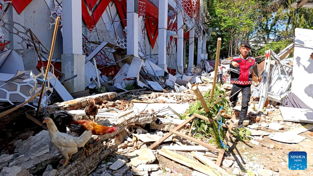 The victim, a 70-year-old resident of Minahasa regency in North Sulawesi, was killed after being struck by collapsing building debris during the quake, said the local search and rescue team in Manado, the capital city of North Sulawesi. (Photo by Frans Nugraha/Xinhua)