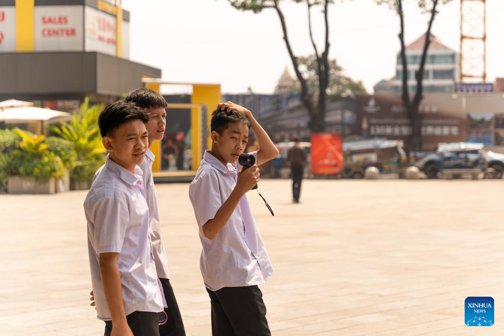 People walk on a street in Vientiane, Laos, April 2, 2026. Many parts of Laos have recently seen temperatures reaching up to 40 degrees Celsius. (Photo by Kaikeo Saiyasane/Xinhua)