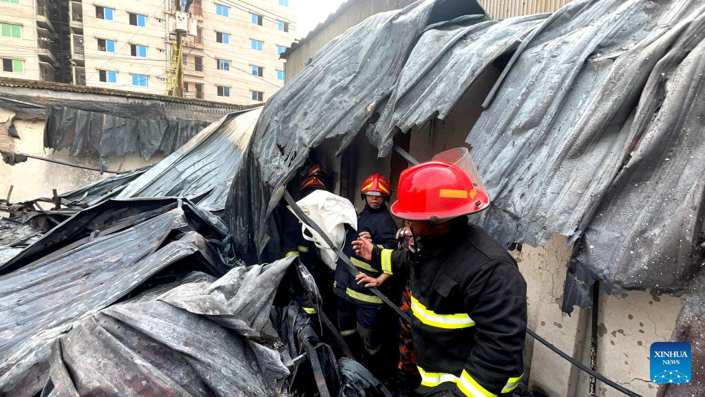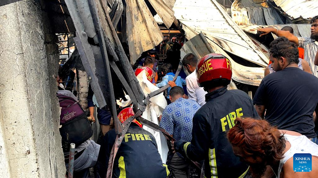 DHAKA, April 4 (Xinhua) -- A massive fire swept through a tin-shed factory manufacturing gas lighters in Keraniganj on the outskirts of Bangladesh's capital Dhaka on Saturday afternoon, killing at least five people, an official said.
