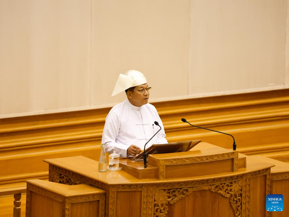 During the session, U Nyo Saw and Nan Ni Ni Aye were also sworn in as the country's vice presidents. (Xinhua/Myo Kyaw Soe)