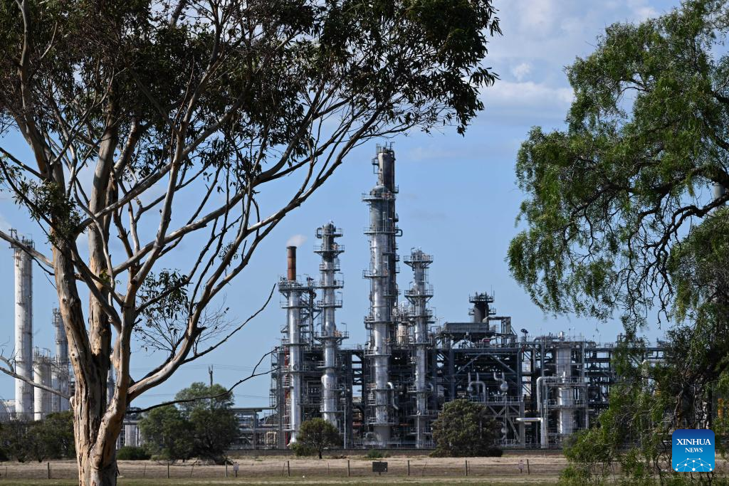 This photo taken on April 16, 2026 shows a view of Viva Energy's refinery in Geelong, Australia. Authorities said on Thursday that equipment failure caused a major fire at an Australian oil refinery on Wednesday night that is expected to affect the national fuel supply.