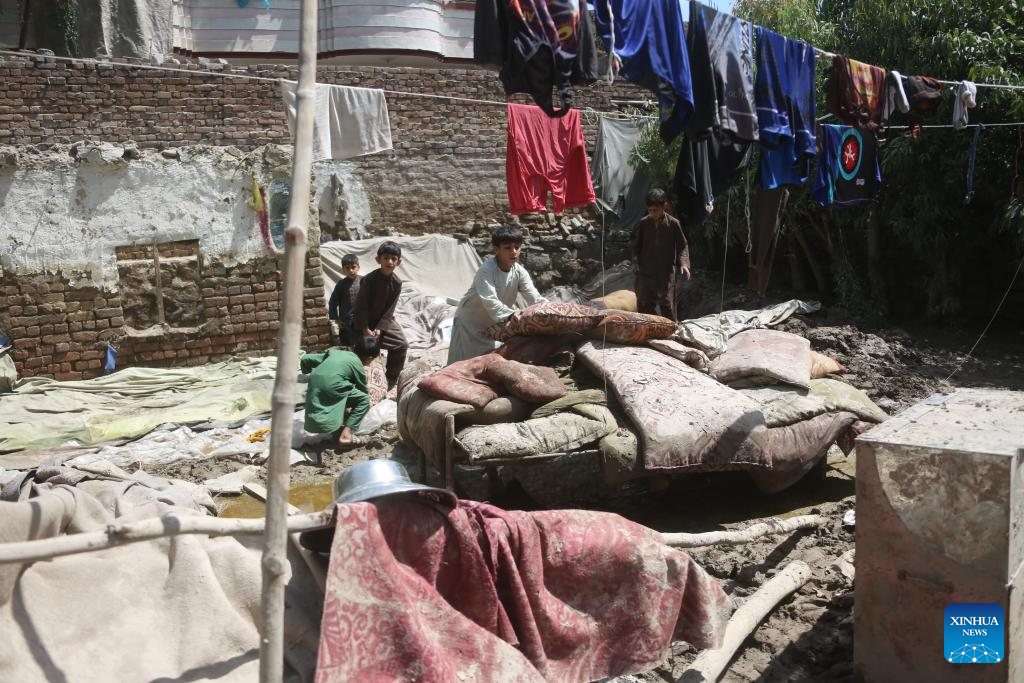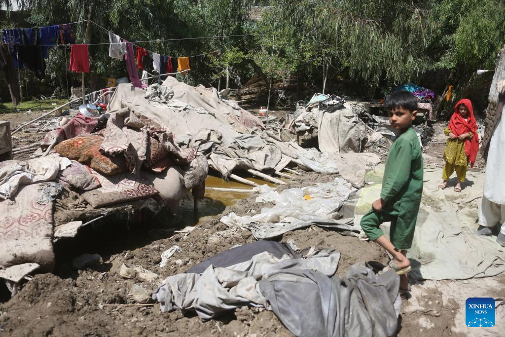 JALALABAD, Afghanistan, April 21 (Xinhua) -- "We have nothing. We don't have a house to live in, and we don't have anything to wear either," said Shir Khan, standing amid the mud and silt that now fill his courtyard in a village on the outskirts of Jalalabad city, the capital of eastern Afghanistan's Nangarhar province. "The flood destroyed everything."