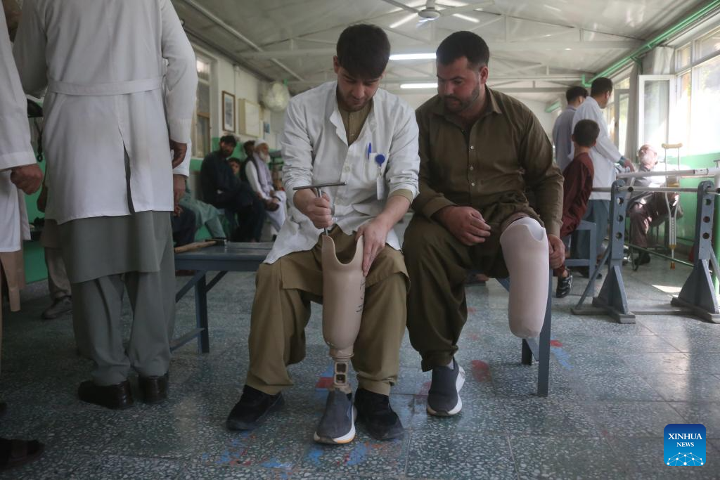 KABUL, April 27 (Xinhua) -- In the dim corridors of a crowded Kabul hospital, 56-year-old Zakaria sits quietly, waiting for his routine medical check-up. Years after a landmine explosion took his leg, the hospital visits address only part of his struggle; the deeper challenge is sustaining a family of 16 in a fragile economic reality.