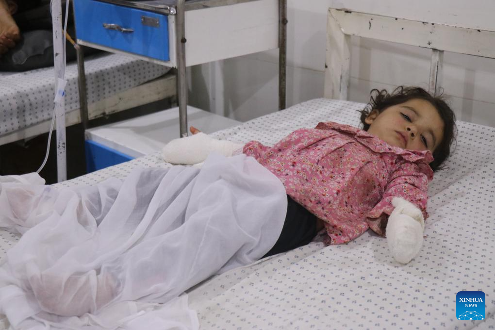An injured child receives treatment at Asadabad Provincial Hospital in Kunar province, Afghanistan, April 27, 2026. (Photo by Qazafi Mal/Xinhua)