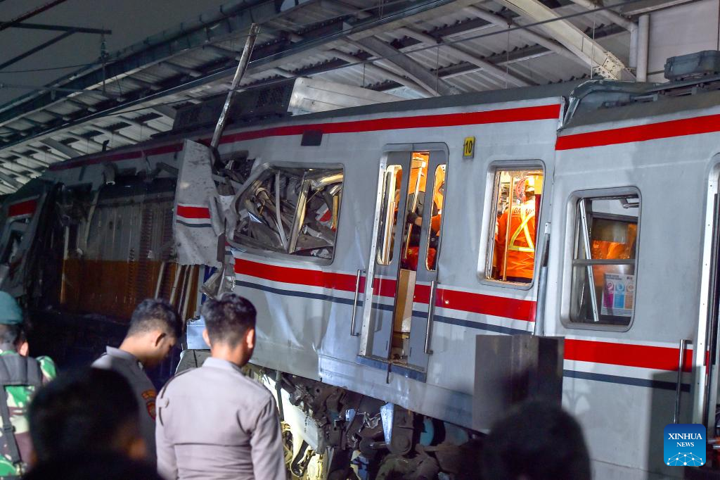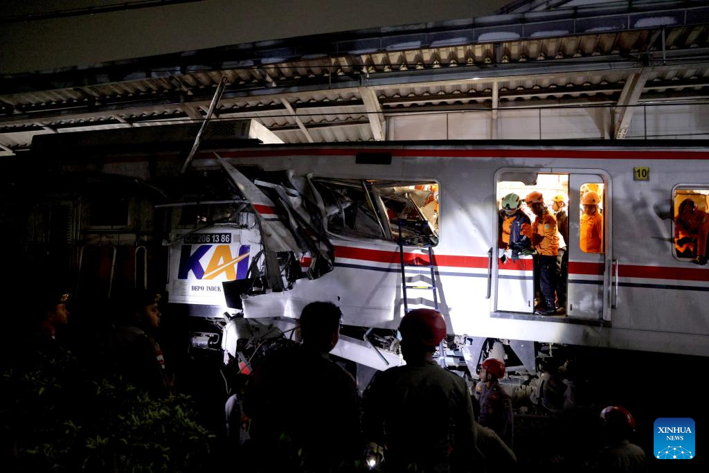 JAKARTA, April 28 (Xinhua) -- The death toll from a collision between two trains in Bekasi, West Java, Indonesia, has risen to seven, with 81 people injured, Anne Purba, a communications officer from the train operator KAI, said on Tuesday morning.