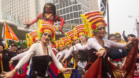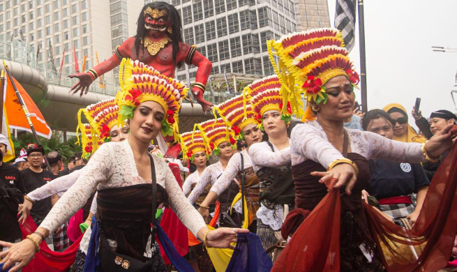 People attend parade to welcome upcoming Nyepi day in Jakarta, Indonesia