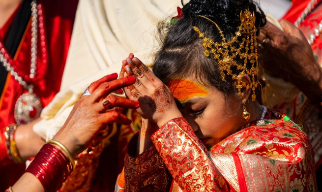 Girls participate in puberty ceremony in Lalitpur, Nepal