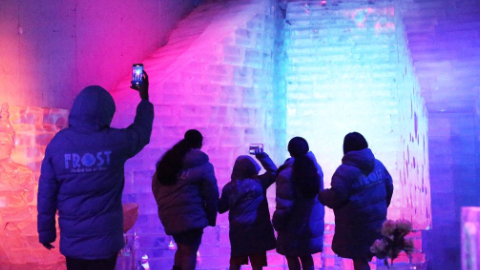 People visit Ala-Too Square during New Year event in Bishkek, Kyrgyzstan