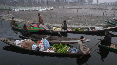 In pics: floating vegetable market in Srinagar, Indian-controlled Kashmir