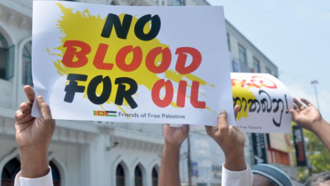 People attend protest condemning U.S.-Israeli military action against Iran in Sri Lanka