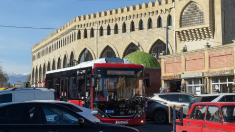 Chinese brand buses seen on street in Ganja City, Azerbaijan