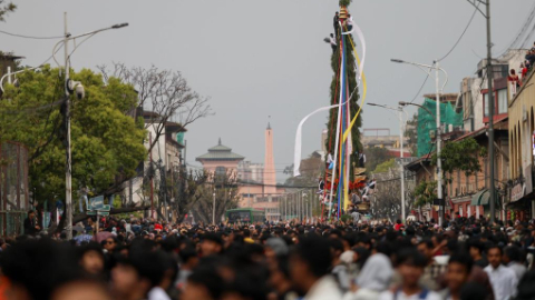 People take part in Seto Machindranath chariot procession in Kathmandu, Nepal