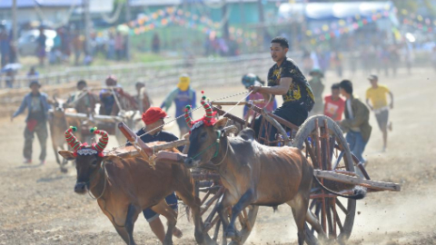 Ox cart race held in Phetchaburi Province, Thailand