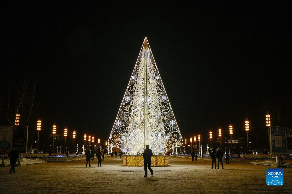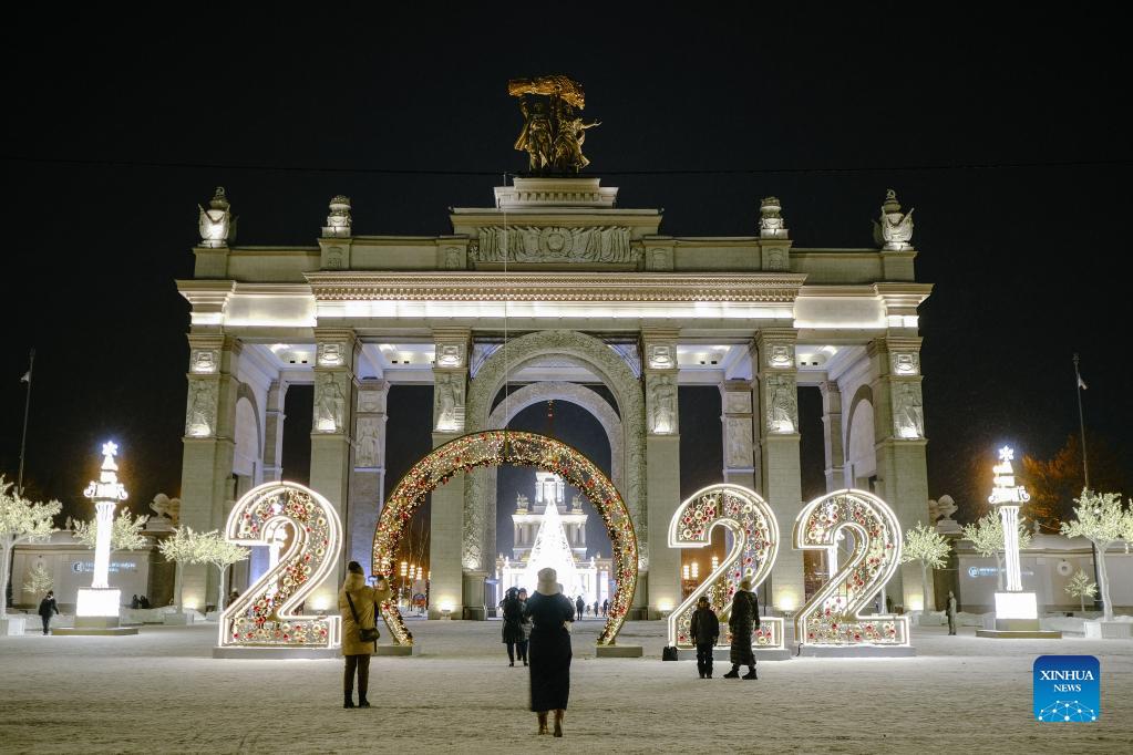 New Year decorations are seen at VDNH (The Exhibition of Achievements of National Economy) in Moscow, Russia, on Dec. 21, 2021. (Xinhua/Evgeny Sinitsyn)