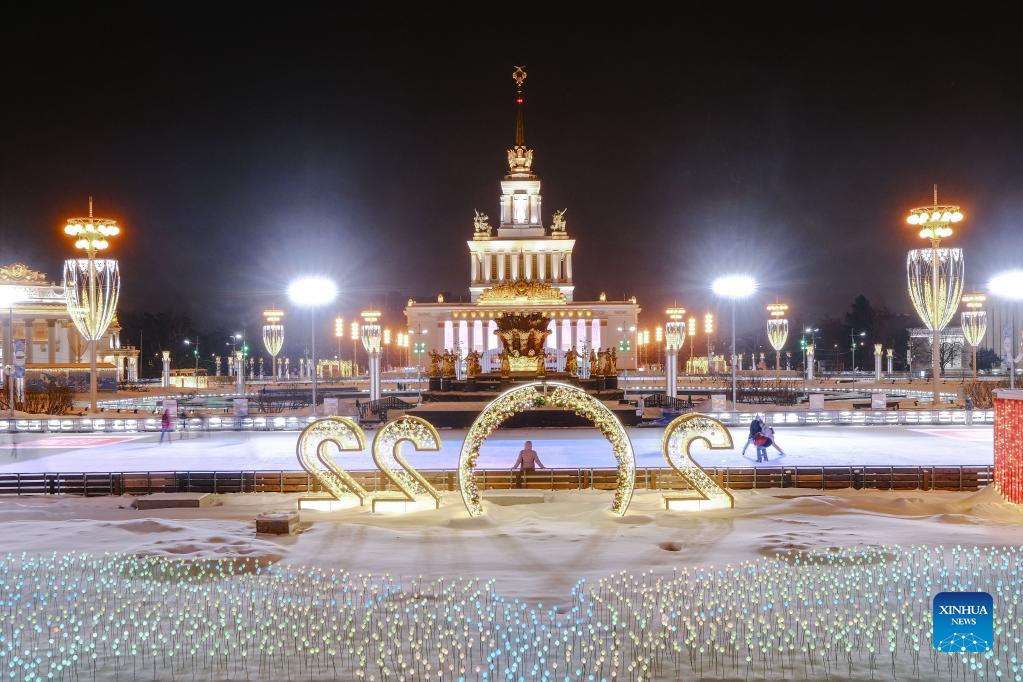 People skate on an ice rink at VDNH (The Exhibition of Achievements of National Economy) in Moscow, Russia, on Dec. 21, 2021. (Xinhua/Evgeny Sinitsyn)